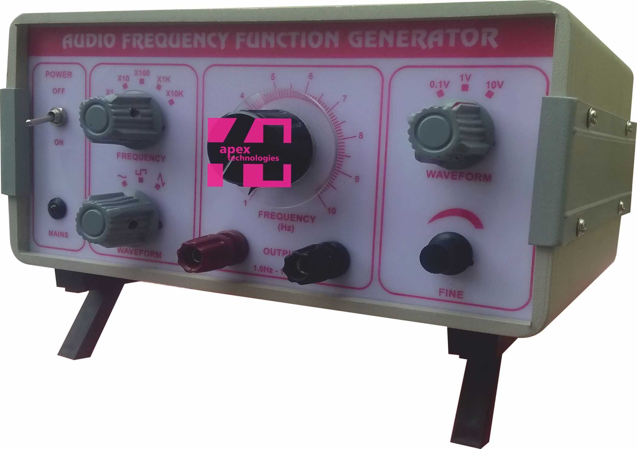 Audio Frequency Function Generator 1Hz to 100KHz (AE 511) Wave shapes : Sine, square & triangular waves selectable using band switch. Frequency range : 1 hz to 100 khz setable using fine & coarse controls Accuracy : ±3 % on all ranges, amplitude for sine wave output : 10 V p/p.