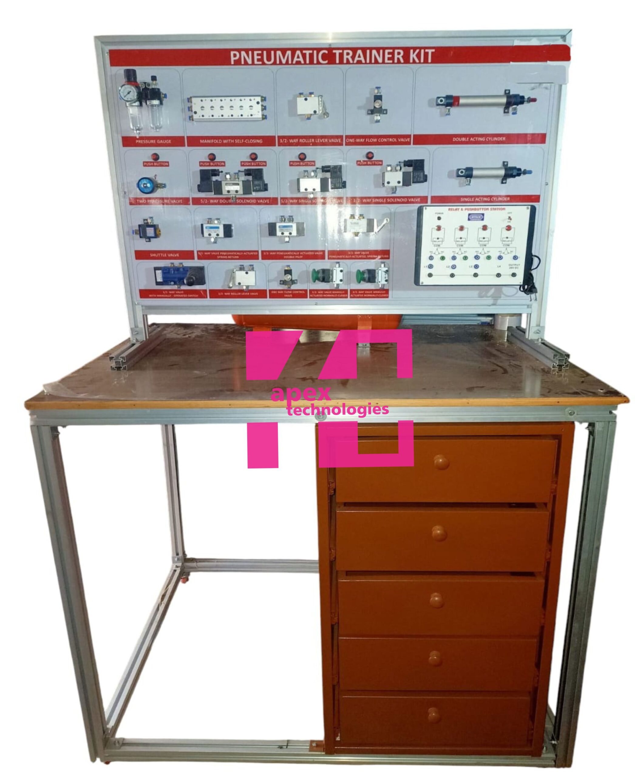 - There are wide ranges of experiments which are provided on the trainer that can be performed. Pneumatic training kits help in teaching the fluid power to industry professionals and the students. The pneumatic training system consists of flow controls, pressure gauges, filters, cylinders, directional control valves, and an air motor.